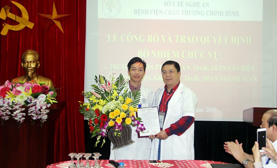 Thạc sỹ, Bác sỹ Trần Văn Biên cùng Thạc sỹ, Bác sỹ Phan Thanh Tuấn cũng bày tỏ lời cảm ơn chân thành và sâu sắc đến Chi bộ, Ban giám đốc Bệnh viện đã tin tưởng giao nhiệm vụ quản lý khoa cho các đồng chí, qua đây 02 đồng chí hứa sẽ nỗ lực hết mình, tận tâm cống hiến để góp phần xây dựng Bệnh viện chấn thương chỉnh hình Nghệ An ngày càng lớn mạnh.